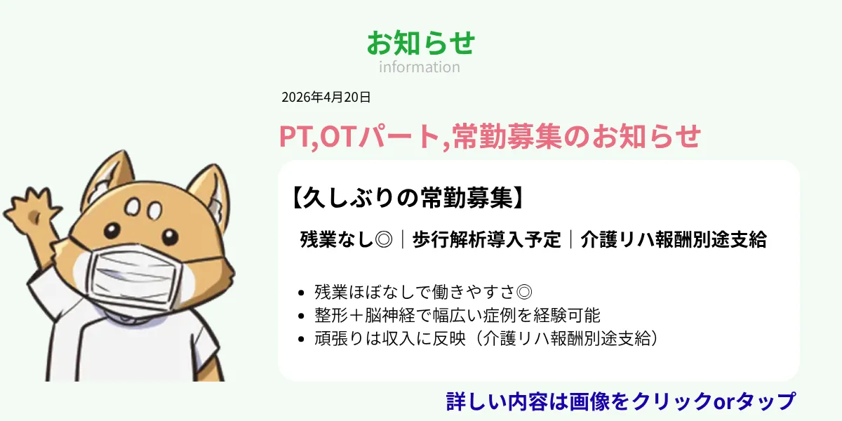 - 理学療法士(PT)作業療法士(OT)募集のお知らせ